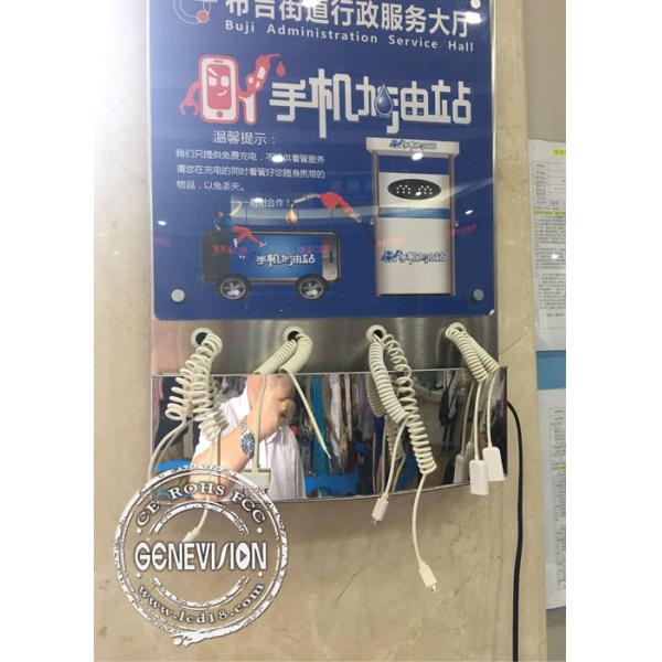 Questions: Whether you have worried about when you cell phone have no power when you are outside? Especially, when you have something important to do, but the cell phone have no power? Dont worry, here we push out a new product, call " Phone charging station kiosk ", it is a product that used for publc center, indoor, shopping mall, library, restaurant...and so on. We have the charge jack: Iphone, Andriod, and Type-C, it can satisfy lots of cell phone's need.
